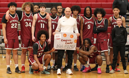 Passero, who had been a lead assistant on Brunner’s staff for the Bengals’ North 1, Group 4 state sectional championship team in 2016-2017, has been a natural in taking the reins of the school’s hoops program the past eight seasons (100-83) and he achieved a noteworthy milestone this past Saturday (Jan. 10) when he notched his 100th career victory with a 58-34 victory over Newark East Side in the Bloomfield High main gymnasium.