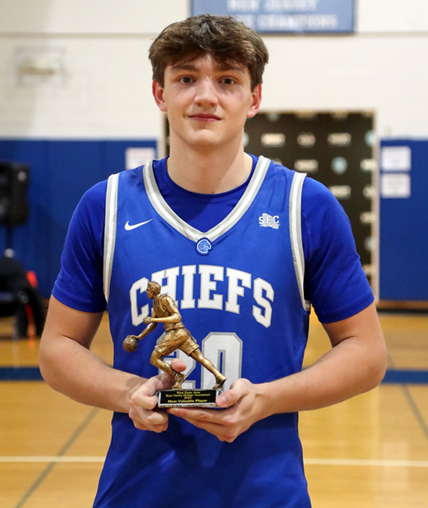The ever-present 6-foot-3 senior forward scored a game-high 19 points and was supplemented by solid efforts from guards Ryan Keenan and Joe Diorio who combined for 20 points as the Chiefs (5-1) earned their eighth straight West Essex Area Holiday Hoops Festival championship with Monday night’s 57-42 victory over the West Essex Knights (2-3) in Mount St. Dominic’s Codey gymnasium.