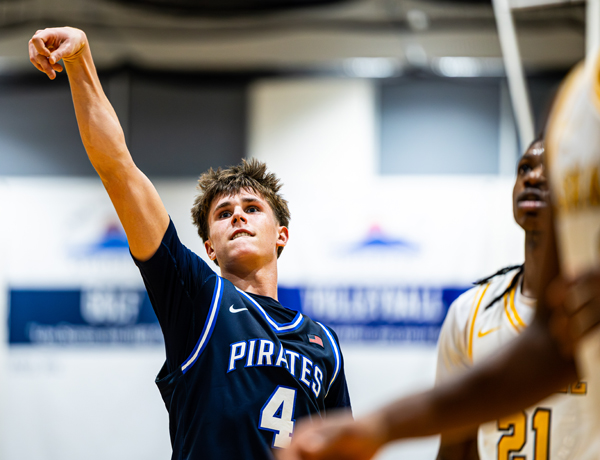 Instead, the Pirates responded with three minutes of clinical offense that bulldozed the Bulldogs and put the game all but out of reach. Amen Ra hit three-pointers on back-to-back-to-back possessions in a span of 59 seconds, twice assisted by Gonzalez, and George followed with a triple of his own 25 seconds later. Alex Ante (10 points, 9 rebounds) finished a backdoor layup on the next trip to extend the Pirates’ lead to 25-11.