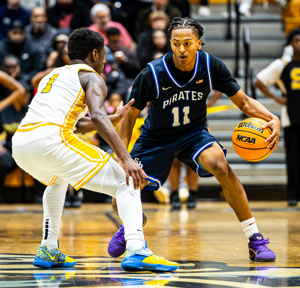 The two teams split their regular-season SEC-American Division meetings, each winning on their own home court (a 65-55 Pirate win on Jan. 6, a 60-55 Benedict’s win on Feb. 3).