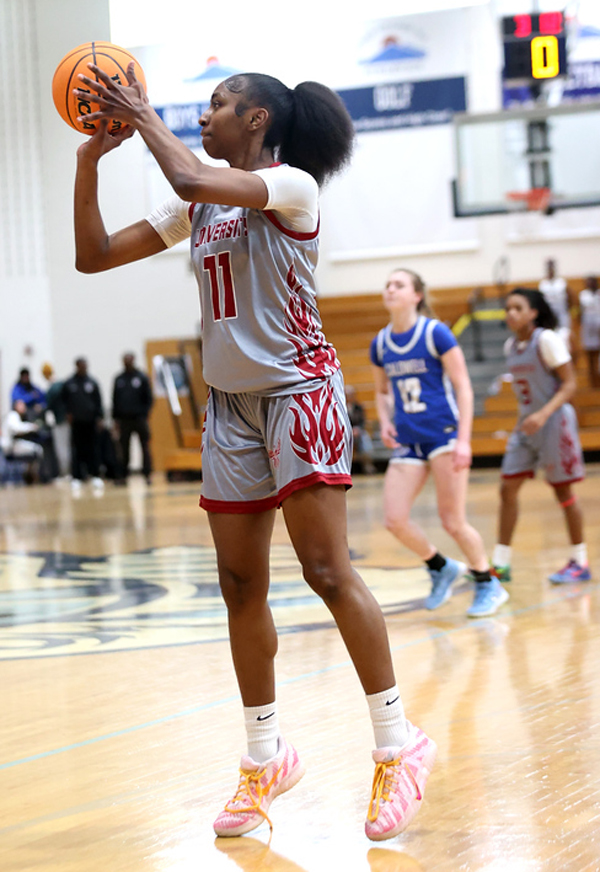 University also has solid talent beyond the irrepressible inside force Holt with players to watch such as senior forward Carryn Grand-Pierre, freshman forward Naylah Phillips, who had 10 points and 10 rebounds in her team’s dominant 76-48 N2G1 semifinal win vs. Newark Tech; sophomore guard Danasia Downer, who had 14 points vs. the Terriers, and junior guards Shanaa Manning-Cook, who averages 4.2 assists per game, and Skylar Clark.