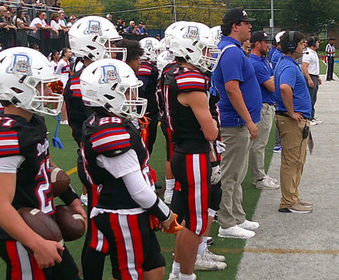 Five different Dayton players reached the end zone: senior returner Chidiogo Iherobiem on the game's opening kickoff, Seton Hall Prep transfer and junior running back Tyler Fuscaldo on two short runs, junior quarterback Adrian Bernknopf on a run, junior lineman Isaiah Rivas on a fumble recovery in the end zone and junior wide receiver Jackson Babiarz on a touchdown pass thrown by Bernknopf. Babiarz was also a perfect four-for-four in extra-point kicks.
