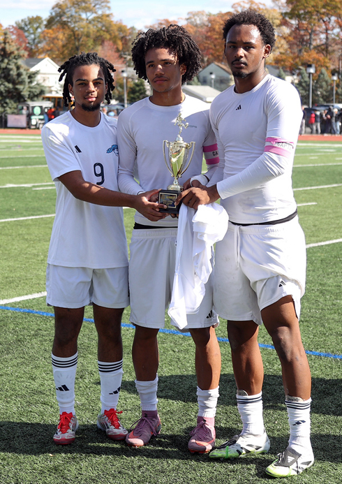 Leading the defensive strength for the Mountaineers was their UCLA-bound senior strongman Marcus Jackson, who stymied several potential pportunities for St. Benedict’s. Senior Carl Hall, his team’s leading scorer, and junior Justin Amaya excelled in the midfield while junior backs Jostin Pereira and Niko Chiovaro were also among the key defenders in front of the superb junior goalkeeper Agustin Arrieta (5 saves).