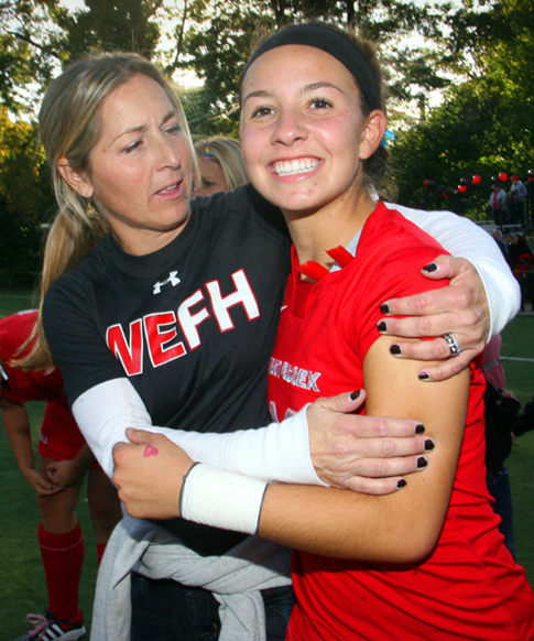 West Essex's longtime field hockey coach Jill Cosse has worked with so many different outstanding players through the years, including Jackie Renda (in top photo), while putting together one of the best resumes of a coach in in any sport in state history and highlighted to close out 2025 season by notching the 600th victory of her illustrious career as Knights notched their 23rd overall state championship. (Sideline Chatter photos)