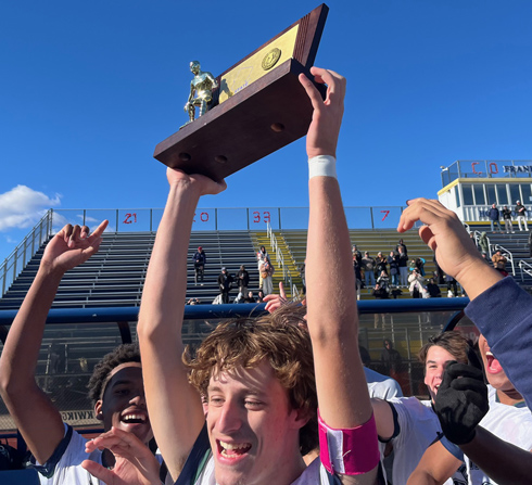 MKA junior forward CJ Dike answered the bell burying his first of two goals on the day just 1:46 into the match for an early 1-0 lead and the Cougars dominated from that point throughout in cruising past South B champ Ranney, 5-0, to capture their first overall Non-Public B state title since 2012 and fourth overall on a very windy late morning at Franklin High School.