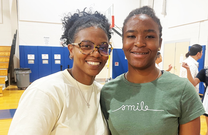 West Orange coach Caniece Williams (left) knows that she has a guard she can always count on in junior Rhyan Watt who is the latest Parisi Fairfield/Sideline Chatter Athlete of the Week. The Mountaineers are getting ready to meet University in this Saturday afternoon's 51st ECT championship final in West Orange's Tarnoff Gymnasium. (SC photo)