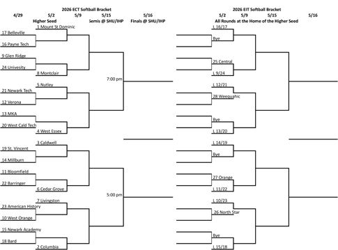 2026 ECT seeding meeting: April 29; first round May 2, quarterfinals May 5, semifinals May 7 and final, 2:30 p.m., May 9, at Livingston.