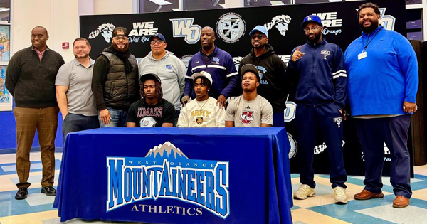 The Mountaineer gridiron trio took time to pose for photos with family, team members, other friends, their coaches and administrators during the recent National Signing Day celebration when the school district's top administrator, West Orange Schools Superintendent Hayden Moore, was quite appreciative of the young men’s efforts in reaching this stage of life in such impressive style.