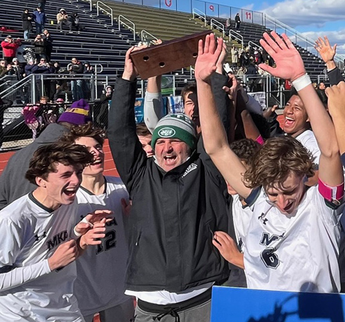 And, as comfortable as Sunday’s shutout victory over the Panthers was none of what occurred in the state championship final would have been possible if it hadn’t been for a memorable moment in Thursday’s North B final vs. Gill when MKA’s 4-year senior defender Braeden Keegan headed in a clutch, game-tying goal with just 1:31 remaining to tie the match at 2-2 just as it appeared that the Knights might escape Van Brunt Field with yet another victory over the Cougars in a state sectional championship match.