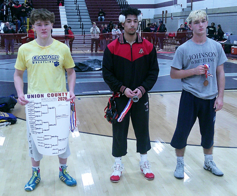 The 51st wrestling Union County Tournament was contested Saturday, Jan. 17 at Union High School's Louis J. Rettino gymnasium, with Cranford winning the team title with 215.5 points. Rahway was second with 206.0 and Union third with 202.0.