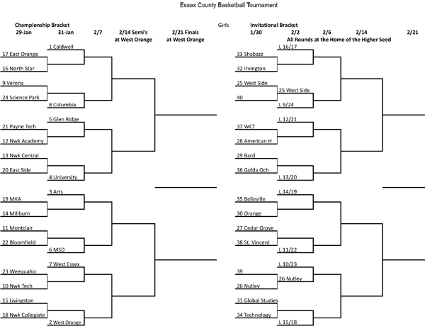 ECT first round action on Saturday (Jan. 31) is followed by the quarterfinals on Feb. 7, both at the higher-seed's home court and then followed by the Feb. 14 semifinals and Feb. 21 championship game at West Orange.
