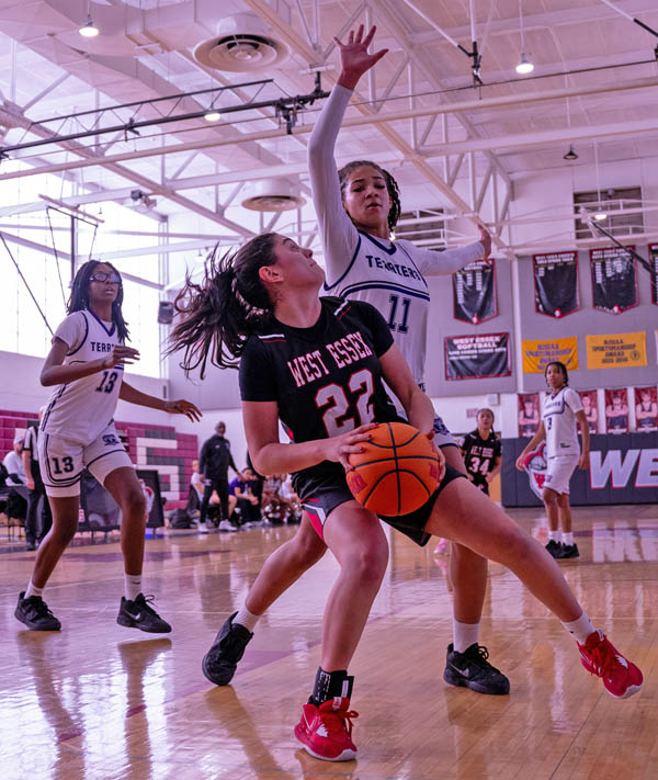 Junior Yazmy Scruggs, Newark Tech’s only upperclassmen starter who led her team with 19 points, scored on a strong drive to the basket to cut the Knights’ lead to 23-20 with 5:12 left in the third quarter before West Essex went on a nice run with six points from sophomore center Jordan Salisbury, a basket by freshman Riley Guevera and a ‘3’ from senior Brooke Balazano as part of an 11-2 run.