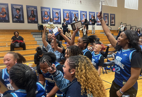 “We work so hard in practice and our coaches push us really hard, which is good, while also coming up with a strategy to deal with two 6-footers like they have,” said Curry (7 points, 4 rebounds, 2 assists, 1 block) as a wild post-championship-victory celebration among players and fans continued in a loud gymnasium. “It was definitely a physical game, they have very strong players and we respect them and their game.