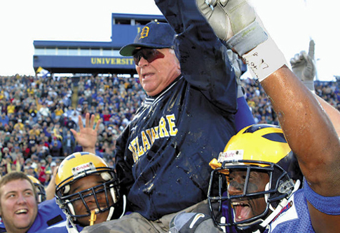 When the single wing offense, which was perfected by Lawrenceville coach Ken Keuffel, and the T-formation that legendary figures in the sport, such as Clary Anderson of Montclair, utilized so well combined through the inspiration of coach David M. Nelson of the University of Delaware, a new offense known as the Wing T was ready to take off in the mid-1960s and Nelson’s successor with the Blue Hens, one Tubby Raymond (1966-2001), was just the man to promote what at the time was a revolutionary approach to utilizing motion and misdirection to evolve into a successful offense.