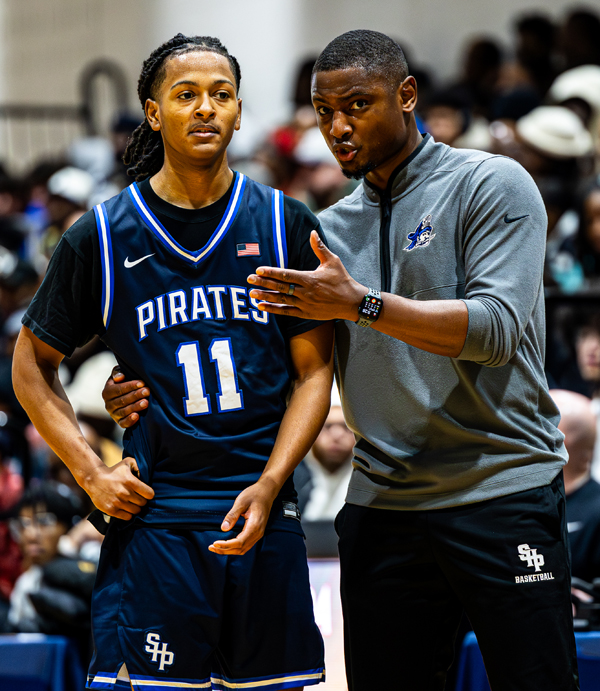 The Gray Bees certainly have the height, length, and athleticism to match almost anyone in the state. In Saturday’s win, Benedict’s frontcourt trio of Terrance Jamison, Daniel Hinkov and Arouna Coulilbaly – all 6-foot-5 or taller – terrorized Arts, combining for 34 points and 21 rebounds including a staggering 14 offensive boards. Those three, combined with the terrific guard play of junior Jack Liz Martinez (13 points, 5 rebounds), should offer a major challenge to the Pirates.