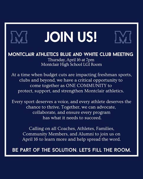 MONTCLAIR- Athletic Director Matt Belford knows full well that it’s going to take a community-wide effort in order to help keep Montclair High School athletics afloat as the school district continues to deal with a 19.6 million budget deficit which has rocked the history-laden Essex County town, including with the elimination of funding for freshmen sports in the upcoming 2026-2027 school year.